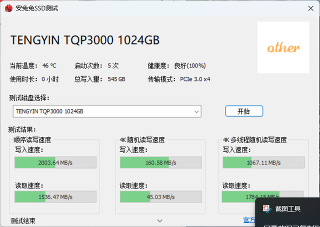 笔记本的内部空间狭小,硬盘发热容易导致降速,这是很多用户升级SSD时的痛点。但腾隐TQP3000的温控表现让我惊喜不已。