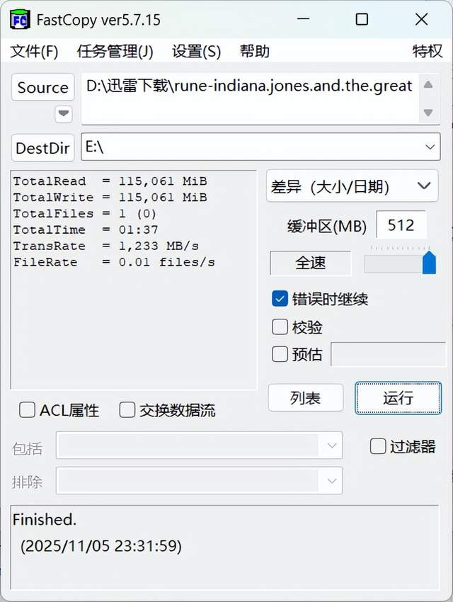 腾隐TQP3000通过了3000+小时循环通断电测试、72小时BrrnlnTest老化测试和72小时恶劣环境数据稳定性测试以及16轮高温全盘读/写/擦除坏快复检测试,稳定性有保障。使用FastCopy拷贝一个115GB的游戏文件,耗时1分37秒,平均传输速度1233MB/s,性能十分不错。